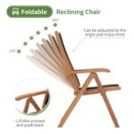 2pcs Folding Patio Dining Chairs, Outdoor Acacia Wooden Rope Reclining Chair w/Armrest