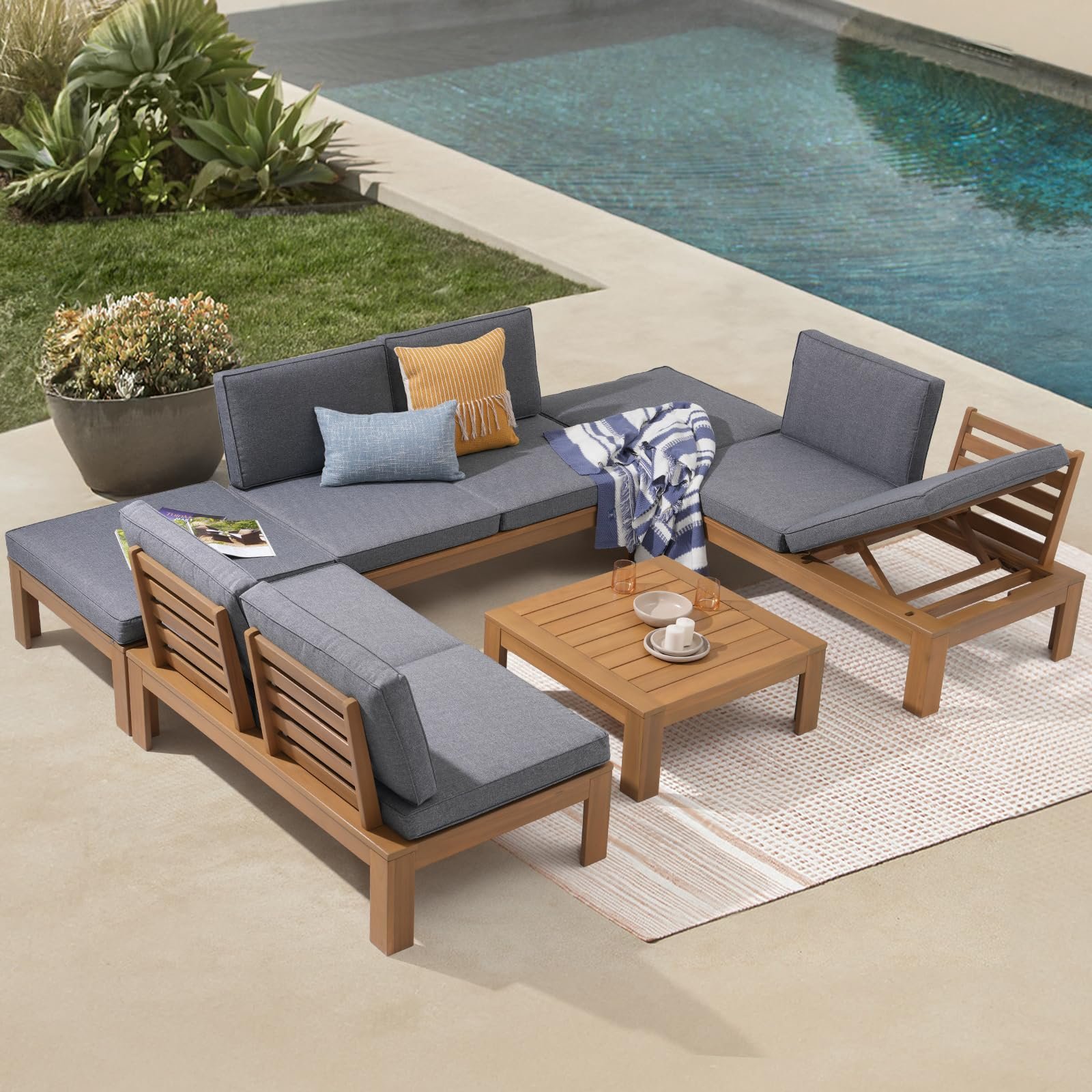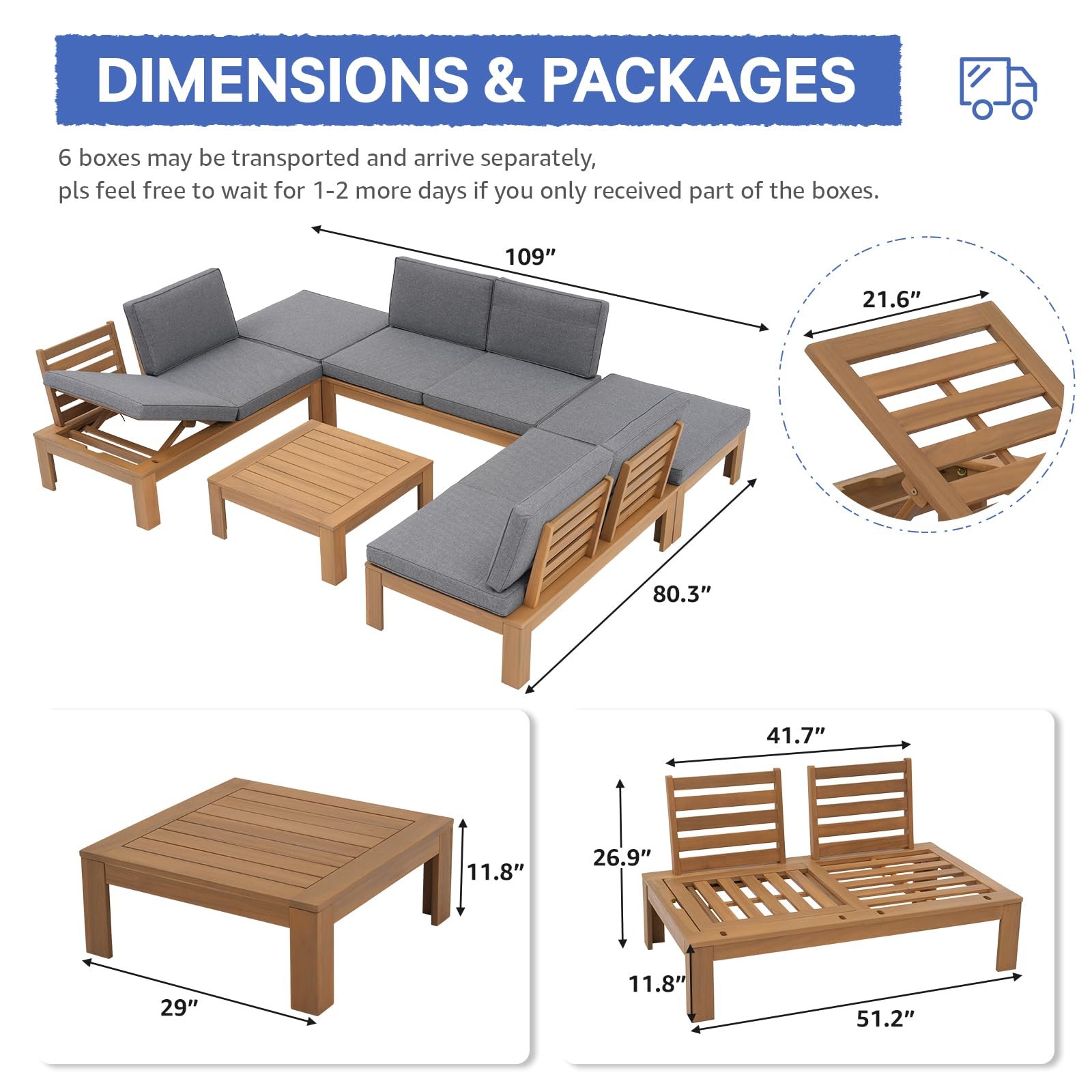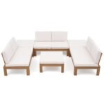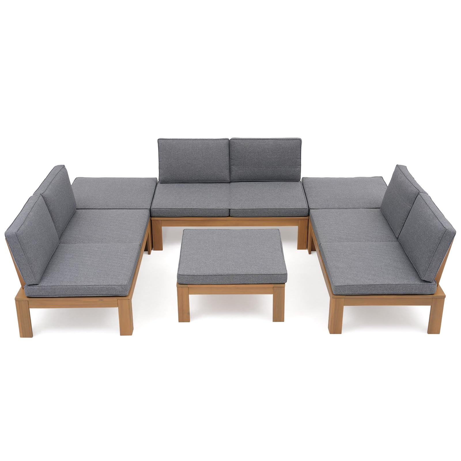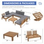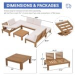 6Pcs Acacia Wood Patio Furniture Outdoor Sectional Sofa Set with Adjustable Armrest, FSC Certified L-Shaped Patio Set