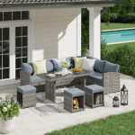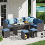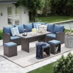 - Durable & Beautiful The layout of 7-pc. outdoor sectional sofa sets are suitable for any outdoor space. Fashionable rattan and modern design may attract everyone’s attention and the sturdy construction will make this piece a favorite of yours. Come to create a wonderful and luxurious outdoor living space for you and your significant others.