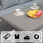 - Sturdy PE Rattan & High-Quality Cushions and Pillows – This 7-pcs outdoor Sectional Sofa Set is made of weather-resistant high-quality PE rattan, elegantly woven on a strong powder-coated and rust-resistant steel frame. The upgraded fabric material brings a better splashproof ability to the cushion. All cushions and pillows have a zipper design, which is more convenient to remove and replace another new cushion cover.