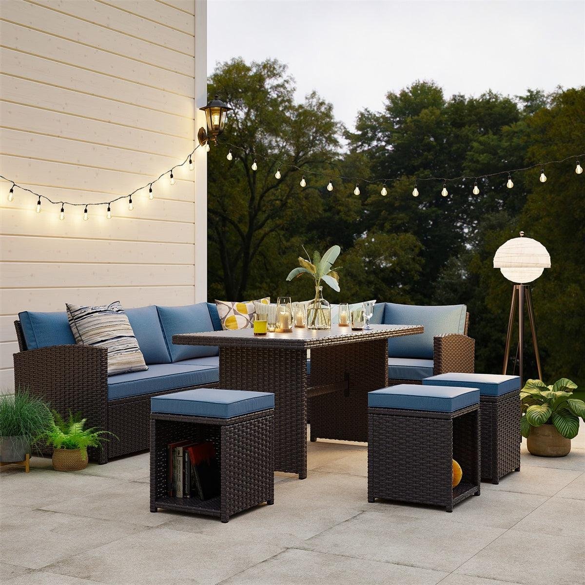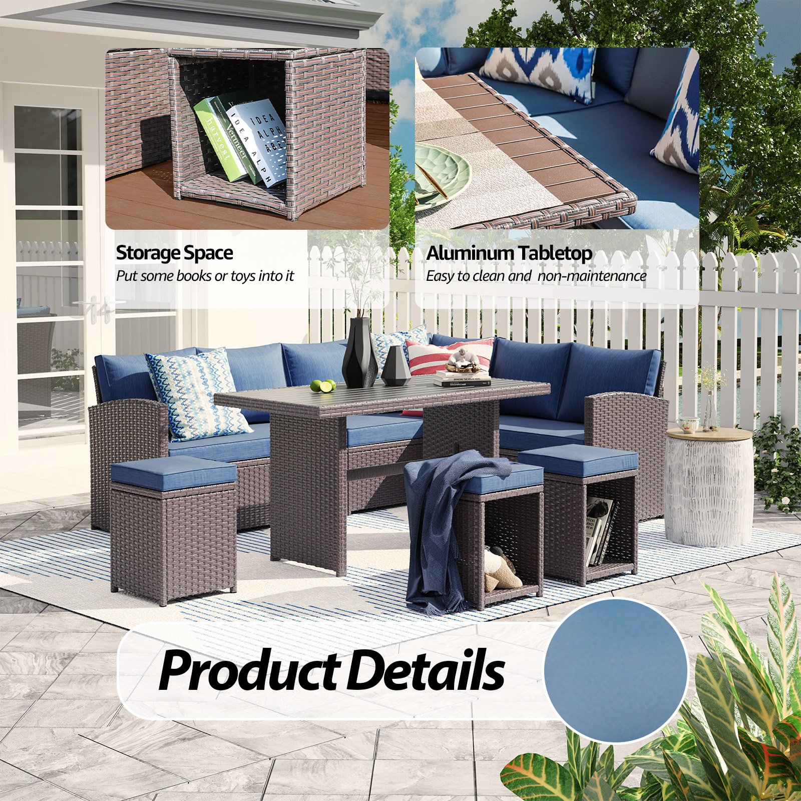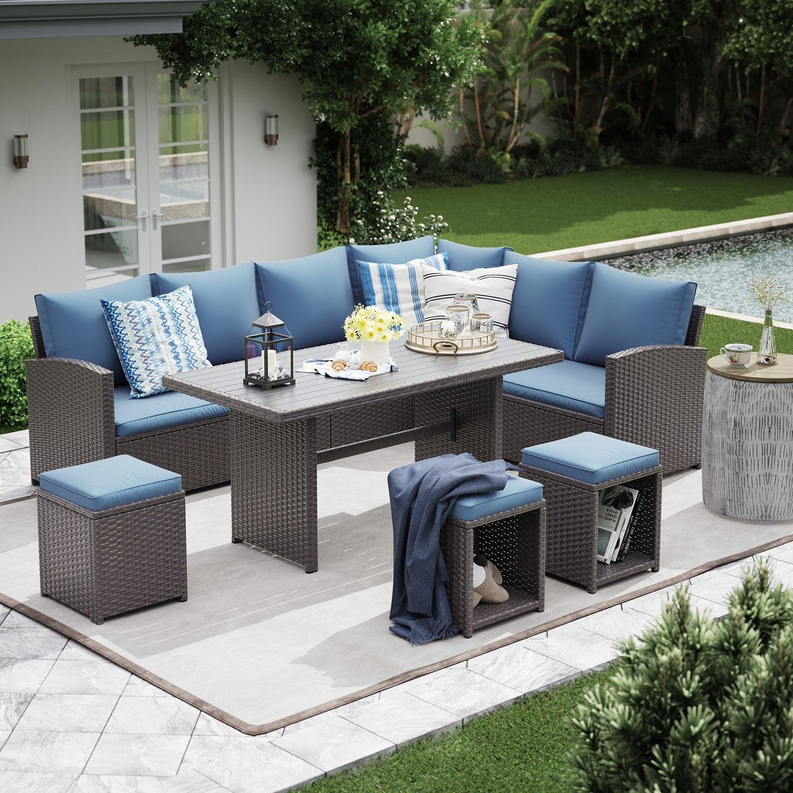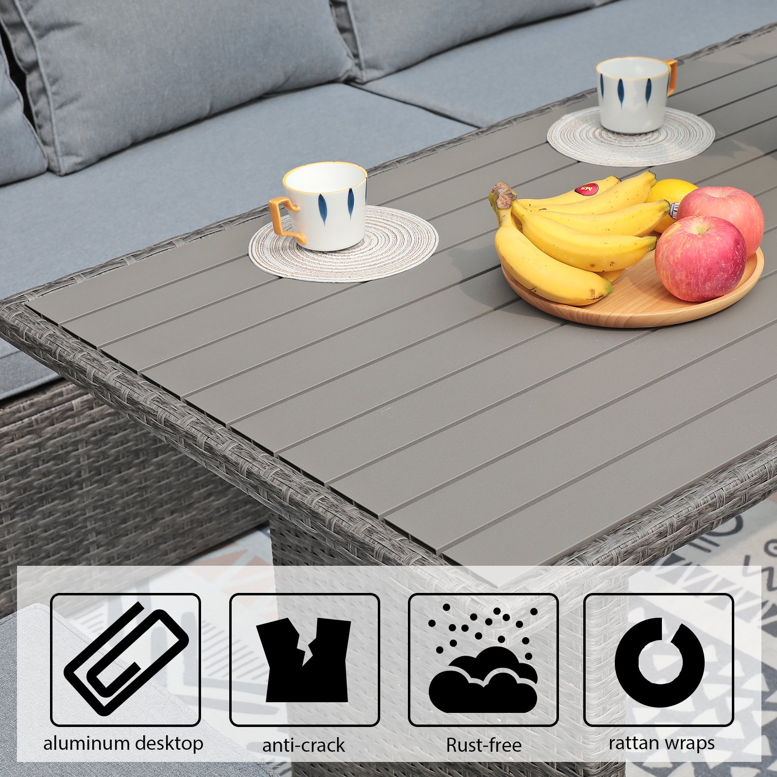 8 Seats Outdoor Sofa Dining Set Wicker Patio Sectional Set with Dining Table