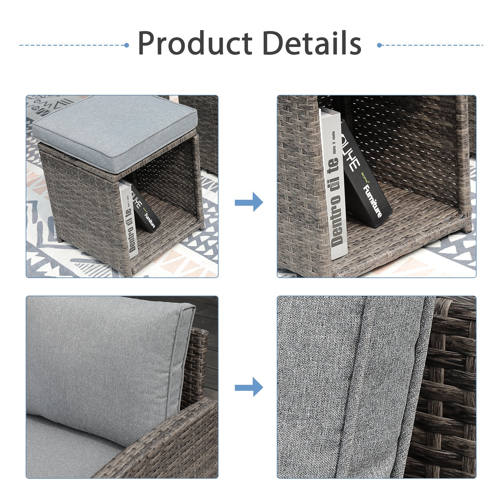 Handwoven and Premium RattanFeaturing with a powder-coated steel frame, UV and all-weather resistant PE resin rattan wicker, durable yet lightweight, which makes it easy to carry and move, this wicker patio furniture set is designed to ensure a long service life. |