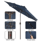 - Convenient Tilt & Crank Systemļ¼ Our patio umbrella is easy to open and close by the crank handle. The tilt function adjusts up to 45 degrees, pressing the push button can adjust it according to the sun position, while a wind vent cools air under the umbrella.