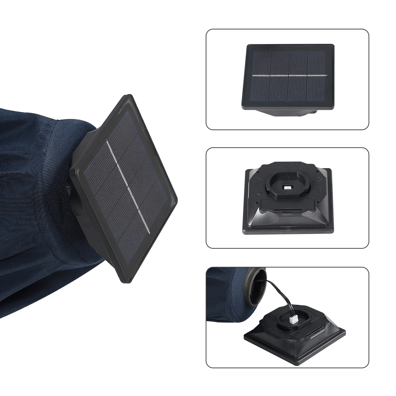 Solar PanelSolar panel at top charging anytime with sunlight, fully charged in 8-10 hrs with sunlight, lights on for more than 5 hrs. |