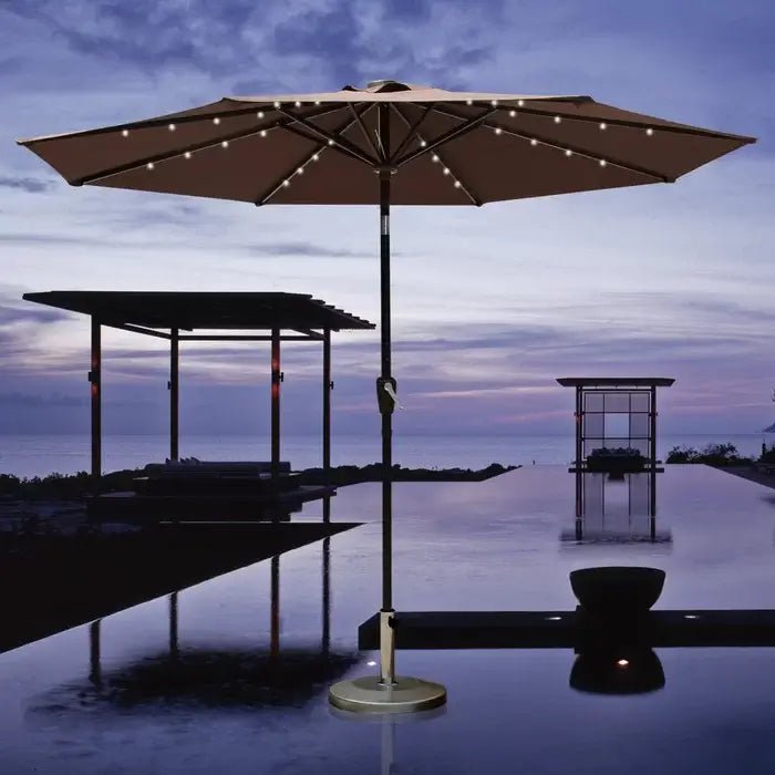 - 1 x 9 ft Umbrella with solar lights