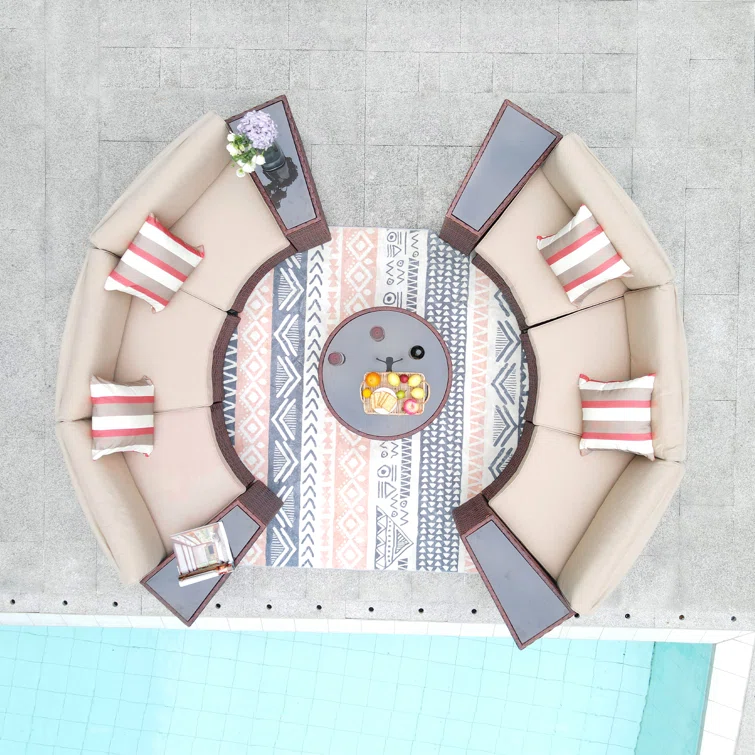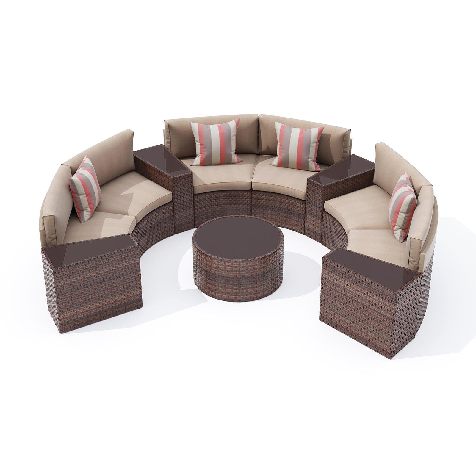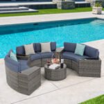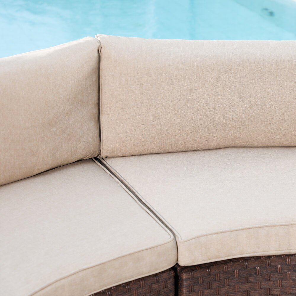 - ćComfort Upgradesć – Multiple arrangement possibilities. Whether arranged together or used separately, this curved patio furniture provides a comfortable experience for you and your guests. With our exclusive throw pillows, the half-moon outdoor furniture offers extra support and comfort outdoors even indoors.