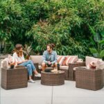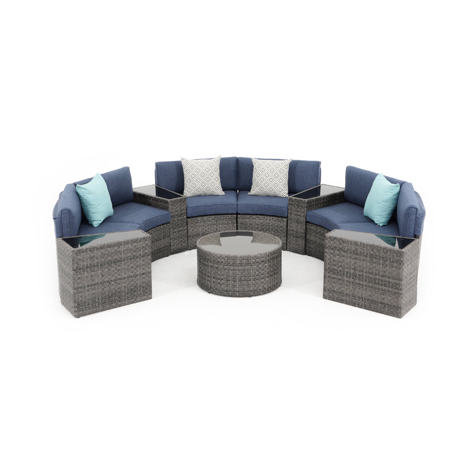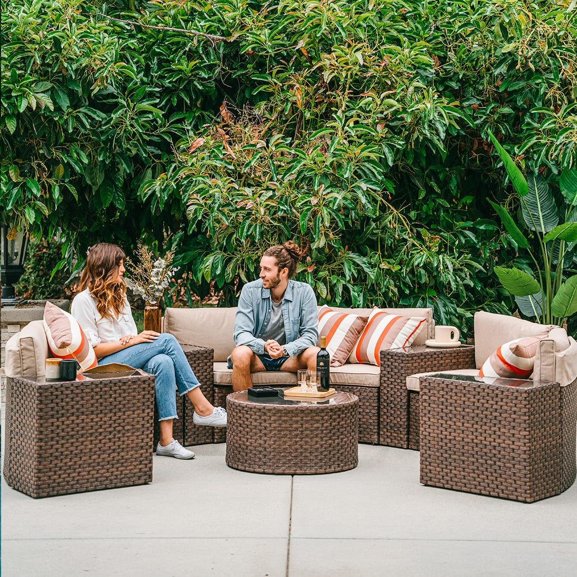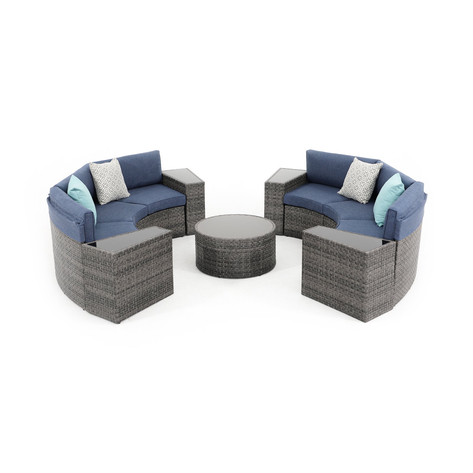 - ćComfort Upgradesć – Multiple arrangement possibilities. Whether arranged together or used separately, this curved patio furniture provides a comfortable experience for you and your guests. With our exclusive throw pillows, the half-moon outdoor furniture offers extra support and comfort outdoors even indoors.