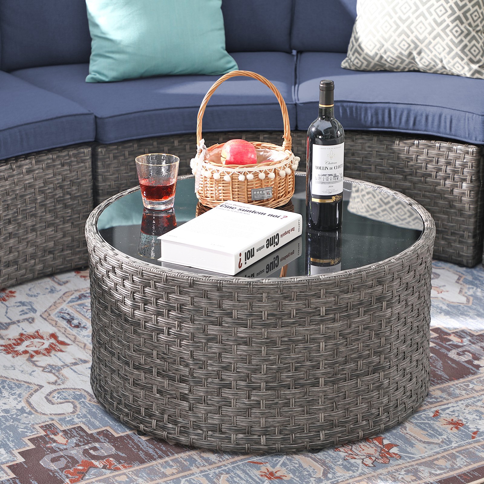 | Materials | PE rattan, Glass tabletop |