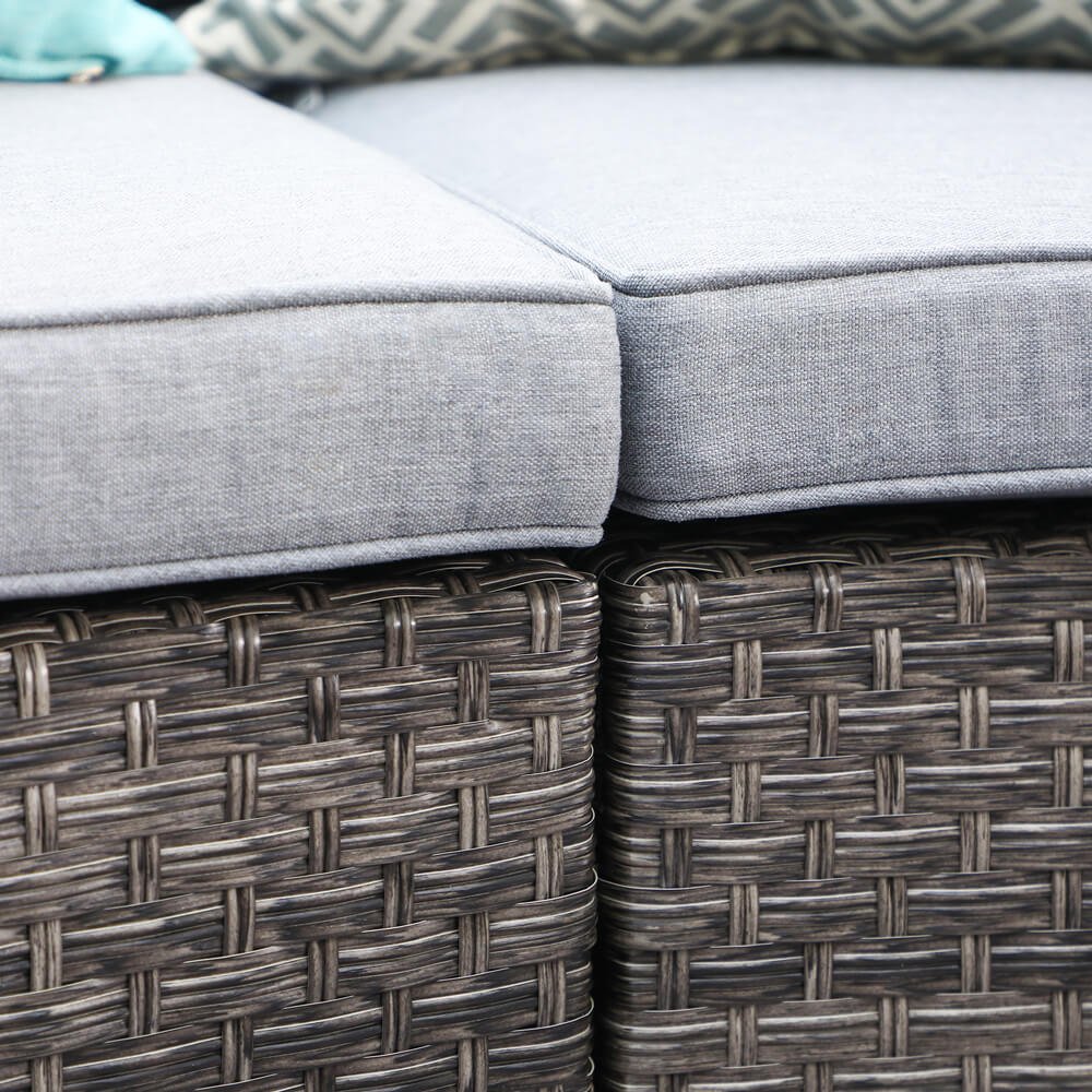 - ćHandcrafted All-Weather Wickerć – The faux rattan gives the look and texture of natural rattan with the durability and UV resistant of resin. Featuring poly rattan that is elegantly woven over durable powder-coated steel frames and paired with UV/fade resistant cushions to provide not only comfort but durability.