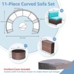 11pcs Outdoor Curved Sofas Wicker Half-Moon Sectional Set, 4 Colors