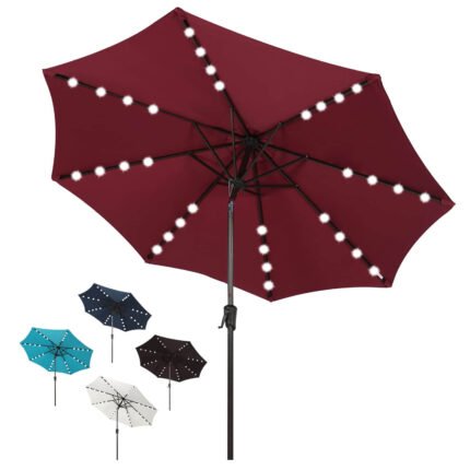 9ft Patio Umbrella with LED Lights Polyester Umbrella with Tilt and Crank, 3 Colors