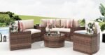 Wicker Outdoor Conversation Set with Lift-top Table Patio Sofa and Dining Table Set