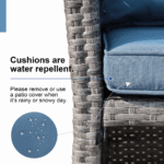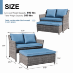 - High Quality–The wicker loveseat set is made of all-weather rattan and sturdy steel frame ensures the long-lasting. Supports up to 250 lbs per seat. Filled with highly elastic foam, cushions are water repellent. Remove it when rainy day.
