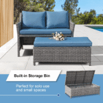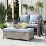 - Comfort–The wide and deep conversation set provides relaxation for 2-4 people. Thick resilience cushions are comfy and it’s a good height for sitting. After a long day, sit with your feet up and forget fatigue and enjoy leisure time completely.