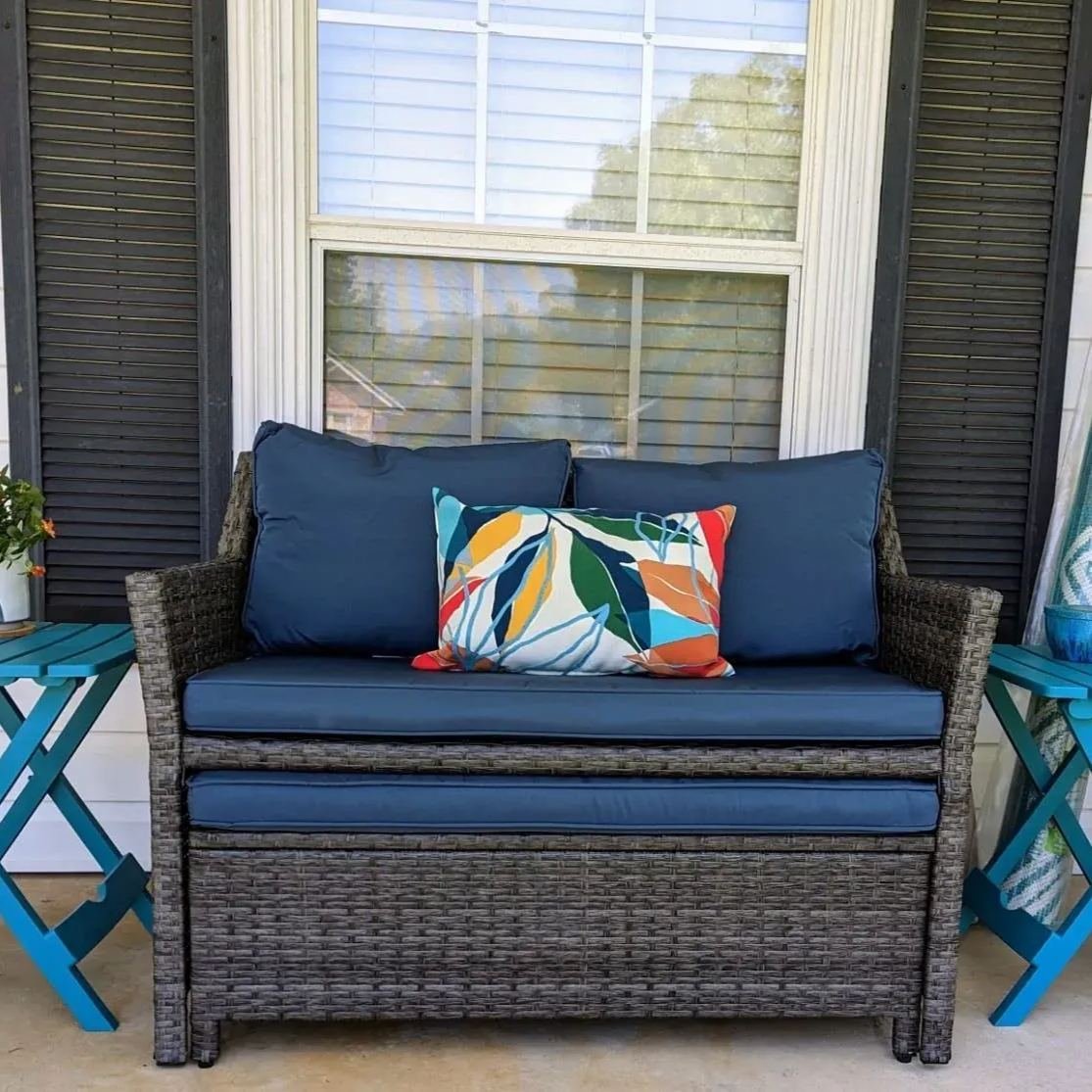 - Quick Assembly–Package Includes 1 x Loveseat;1 x Coffee Table; 2 x seat cushions and 2 x pillows. Assembly is easy with included clear instructions and necessary hardware.