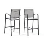 - Modern Barstool – Perfectly blending clean metal armrest and refined grey fabric, the small outdoor bar chair with a timeless look that complements spaces of all sorts, making this ideal for your backyard, poolside, or garden.