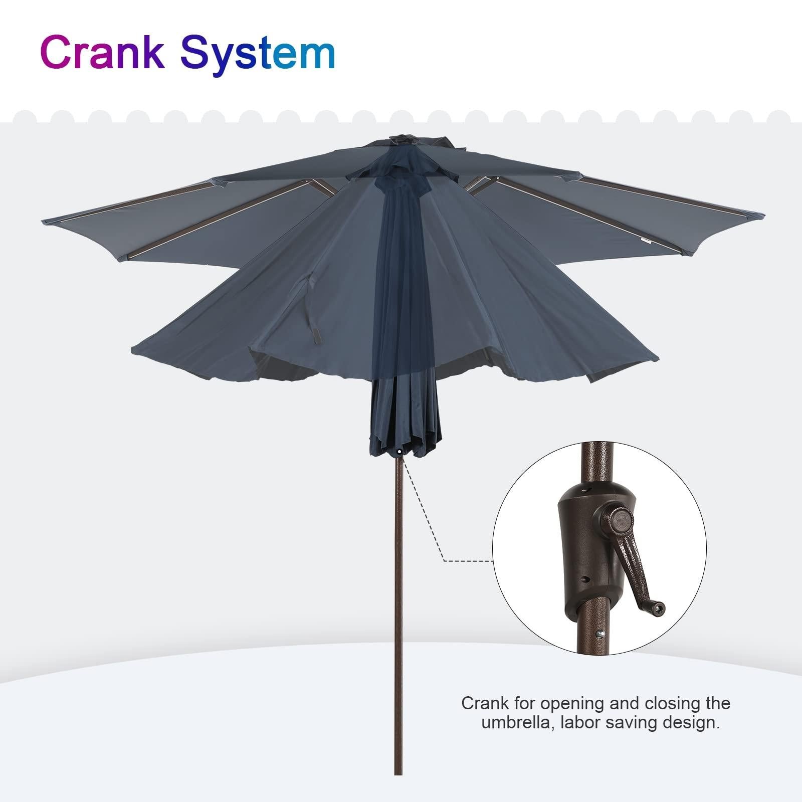 9ft Round Patio Umbrella, Polyester 8 Steel Ribs Large Table Market Umbrella, 5 Colors