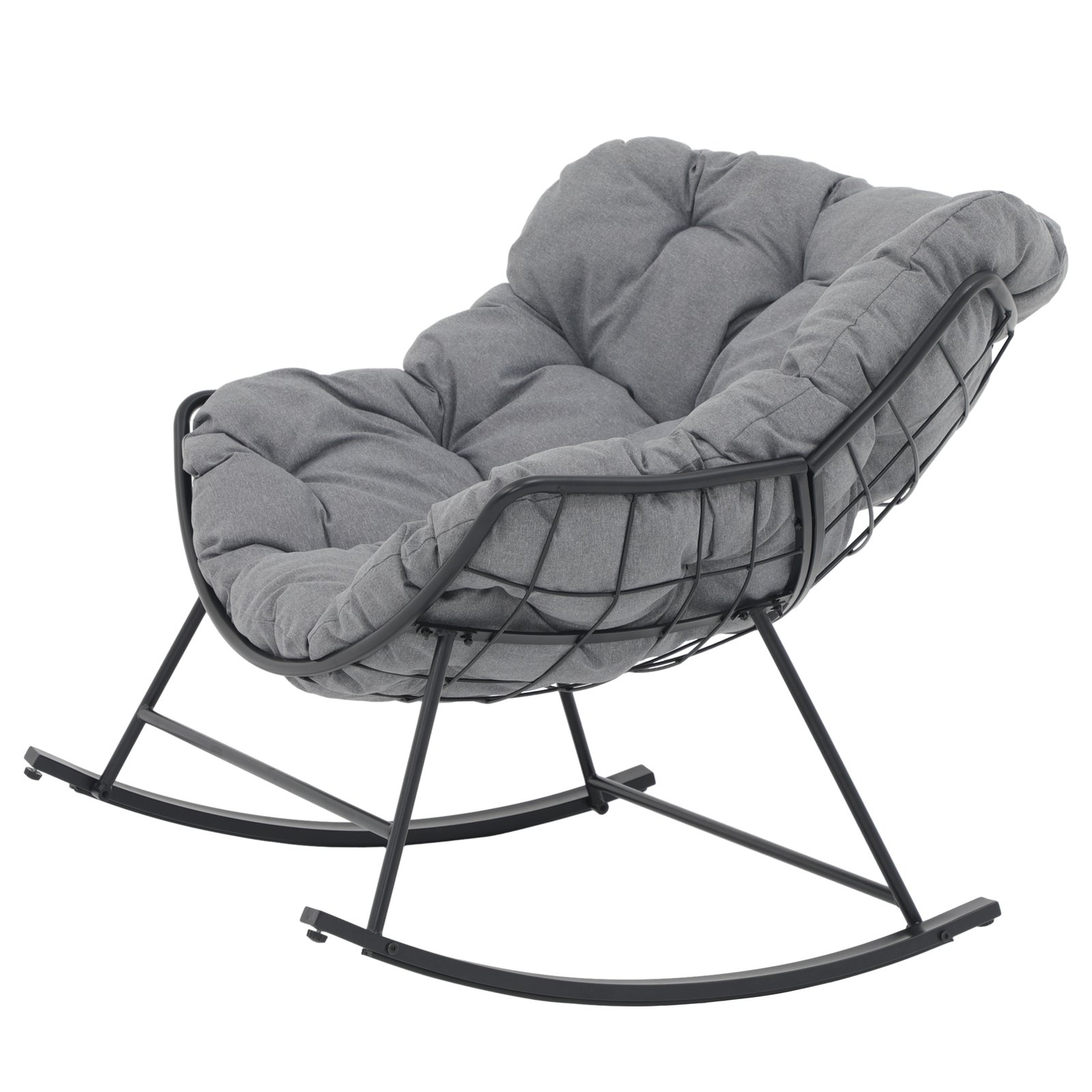 Relax and enjoy your backyard or patio space in style with this rocking chair. Made of a steel frame, this stylish and durable outdoor rocking chair is built to last. With the included cushions on the seat and chair back, this rocker will make you want to spend the whole day on your patio, even when it’s cloudy.